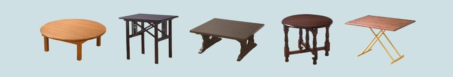 当店では昭和レトロなちゃぶ台をはじめ、北欧デザインや民芸家具など幅広いデザインのおりたたみテーブルを販売中です。アンティークやヴィンテージ、大きさや形など幅広く取り揃えております。