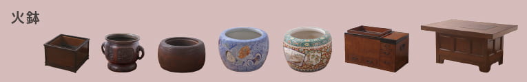 火鉢とは、中に灰を入れ、炭火を置いて体を温める暖房器具。さらには、湯を沸かしてお茶を入れたり、調理をしたりと、さまざまな用途に使われます。
