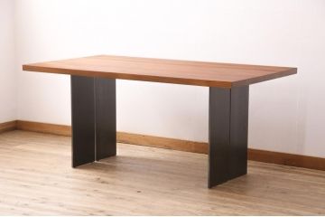 力強い表情を見せながらも端正に仕上げられたウォルナット材の天板は、無垢材の魅力を最大限に引き出しています。自然の風合いを存分にいかしつつも、脚部はブラックスチールでピリッと引き締めているので、ダイニングの空間をかっこよくまとめてくれそうです。