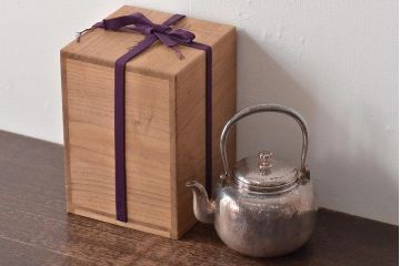 「鉄瓶」が鉄で作られた瓶ならば、「銀瓶」は銀で作られた瓶だといえます。鉄瓶同様、銀瓶もまた茶道具の一つとして使われていました。銀はお湯・水の味を変えない素材であるため、茶の湯の世界では殊更に重宝されてきたという背景があります。