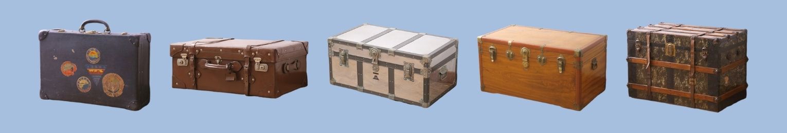 日本のレトロなデザインや、アメリカ・イギリスなど欧米の重厚なデザインなど幅広いサイズ・形のトランクを取り揃えています。