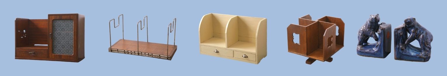 日本のレトロなデザインや民芸家具、引き出しのついたものやアイアン製のものなど幅広いテイストの本立てを取り揃えています。
