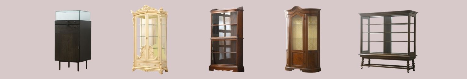 当店では、引き出しや照明のついた大型のものから、レトロ、モダン、クラシカルなものまで幅広いテイスト・大きさ・形のコレクションケースを取り揃えています。
