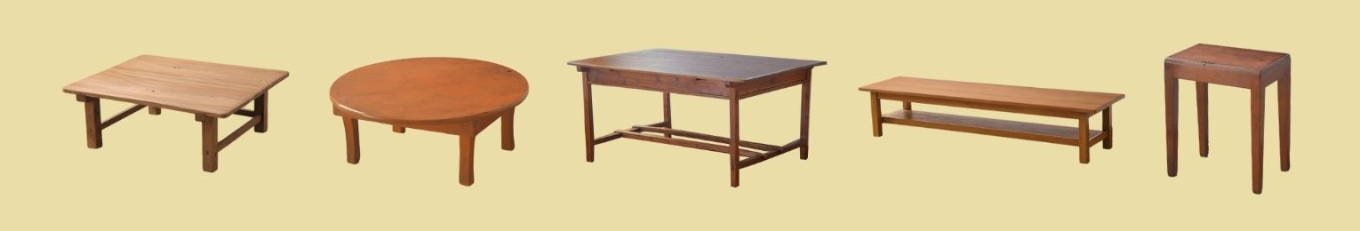 ダイニングテーブル、サイドテーブルからちゃぶ台まで、大きさ・形・サイズなど様々な古家具のテーブルを取り揃えています。