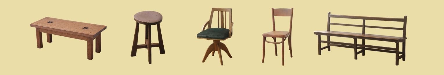 ドクターチェア(回転椅子)やアームチェア、ダイニングチェアなど幅広いデザイン・形・大きさの古家具の椅子・ベンチを取り揃えています。