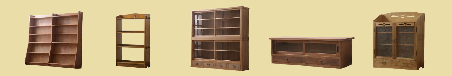 サイドボードや食器棚、本箱やガラス戸棚など幅広いデザイン・形・大きさの古家具の戸棚を取り揃えています。
