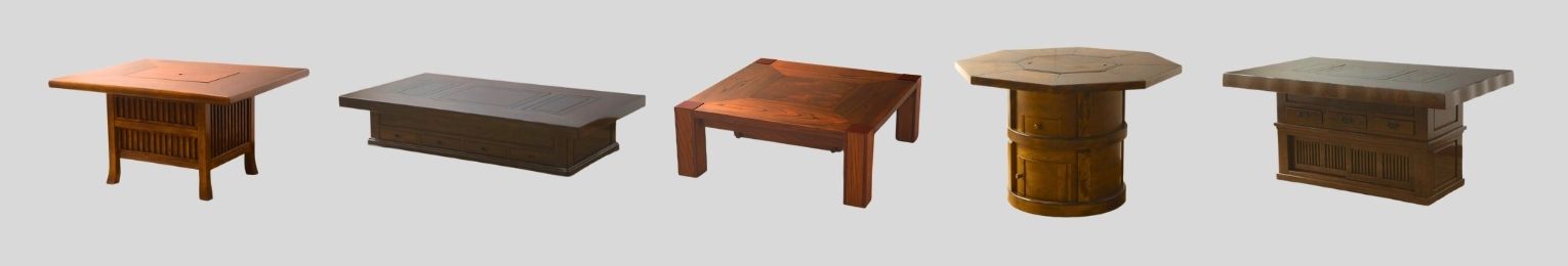 当店ではアンティーク・ヴィンテージの年代ものを中心に、民芸家具や高級な材を使用したものまで、様々なサイズ・形・デザインの囲炉裏テーブルを取り揃えています。