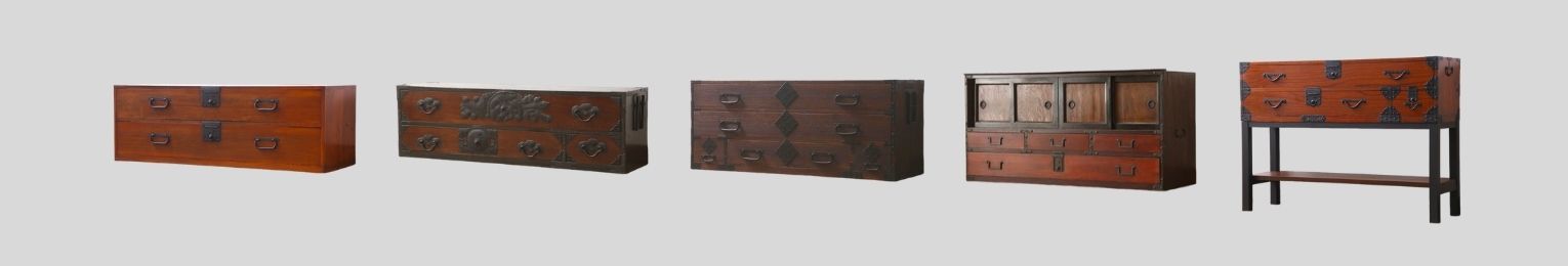 当店では、希少なアンティーク・ヴィンテージの年代ものを中心に、様々な形・デザインの刀箪笥を取り揃えております。