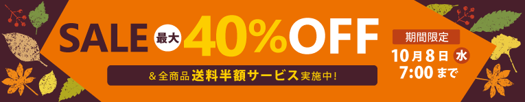 ・表示価格は既にセール価格となっておりますので、カートに商品を入れ、ご購入、ご注文フォームへお進みいただき通常通りお買い求めください。送料に関しましては「送料半額サービス」が適用された金額が表示されます。